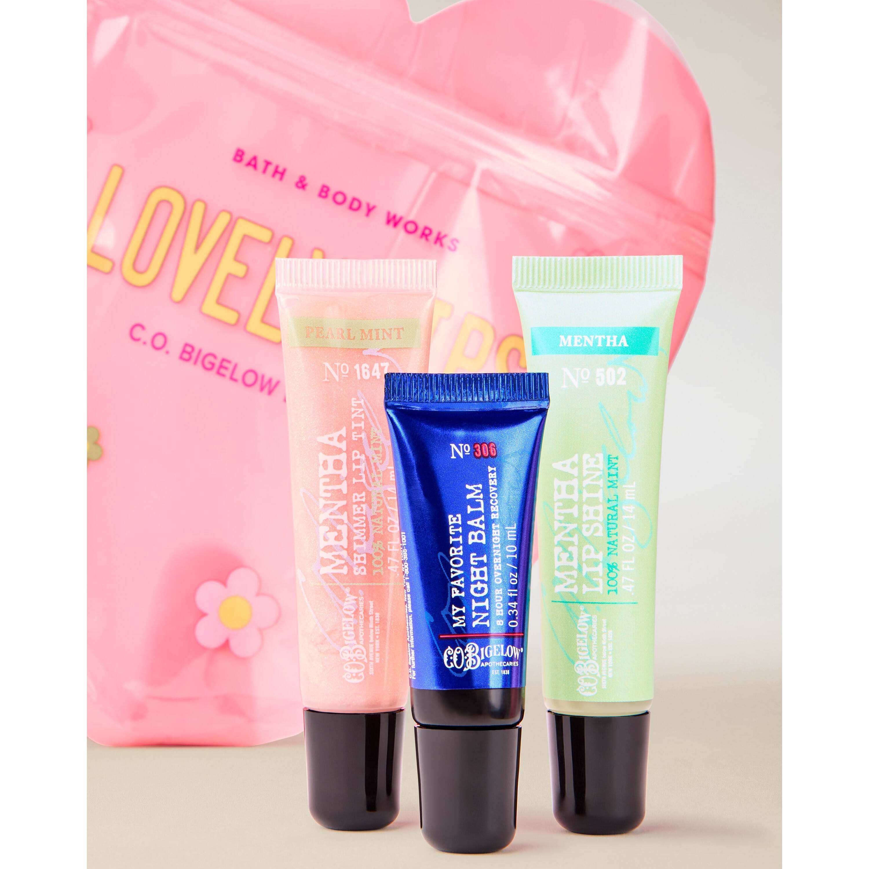 Includes Mentha Lip Gloss (0.47 Fl Oz), My Favorite Night Balm Lip Balm (0.34 Fl Oz) And Mentha Shimmer Tint Pink Lip Gloss (0.47 Fl Oz).